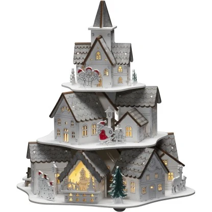 Die Konstsmide LED Holzsilhouette Häuser eignet sich für den Innenbereich und wird mit einem weißen Kabel geliefert, das unauffällig platziert werden kann. Die Dekoration wurde aufwendig gearbeitet und strahlt eine gemütliche Atmosphäre aus, die das Herz berührt.