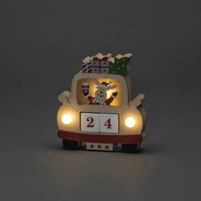 Das Konstsmide LED Holzsilhouette Rentier im Auto mit Datumswürfeln ist eine hochwertige Holzdekoration, die Ihnen das Gefühl von Weihnachtsmarktromantik vermittelt. Wenn Sie den Duft von gebrannten Mandeln, Glühwein und anderen Leckereien auf dem Weihnachtsmarkt lieben, werden Sie dieses Leuchtobjekt zu schätzen wissen. Die Weihnachtssilhouette ist aufwändig gearbeitet und strahlt eine gemütliche Stimmung aus, der man nur allzu gerne verfällt.