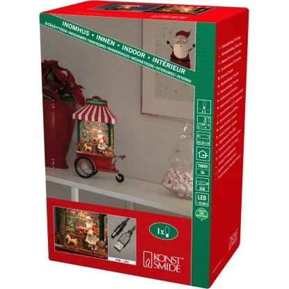 Let it Snow! Diese hochwertige, wassergefüllte Schneelaterne in Form der Werkstatt des Weihnachtsmanns verzaubert mit nostalgischem Schneeflockentanz. Nahezu schwerelos wirbelt die weißglitzernde Pracht um die romantische Weihnachtsszenerie und reflektiert das warmweiße Licht der Diode. Der Anblick der weihnachtlichen Figuren macht das Herz weit und lässt uns Weihnachten wieder mit Kinderaugen sehen. Ein sehr hochwertiges und geschmackvoll gestaltetes Nostalgieobjekt, das einen ganz besonderen Platz in Ihrem Interieur verdient und sogar weihnachtliche Musik für die besondere Adventsstimmung abspielen kann. Durch die Stromversorgung mit 3 C Batterien müssen Sie bei der Platzwahl keine Kompromisse eingehen. Auch den 5 h Timer werden Sie schnell zu schätzen wissen, er sorgt dafür, dass das Licht abends automatisch nach 5 Stunden erlischt, um es am nächsten Abend wieder pünktlich für Sie aufleuchten zu lassen. Ein hochwertiges und langlebiges Markenprodukt, das Ihnen und Ihren Lieben viele Jahre Freude schenken wird. Die Firma Konstsmide ist seit 1942 auf die Herstellung hochwertiger Lichtdekorationen für den Innen und Außenbereich spezialisiert und seit 1999 maßgeblicher Impulsgeber für innovative, langlebige und sichere LED Lösungen.