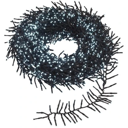 Eine Partystimmung oder eine gemütliche Weihnachtsbeleuchtung schafft die LED-Clusterlichterkette. Mit Ihren 1.920 kaltweißen LEDs verschönert sie Ihren Garten, die Terrasse oder den Wohnraum. Ihr Kabelstrang weist eine schwarze Farbe auf, die perfekt zu den bunten Lichtern passt. Die Lichterkette kann in Innen- oder Außenbereichen zum Einsatz kommen. Ihre Gesamtlänge beträgt 19,5 m inklusive der 5 m langen Zuleitung.