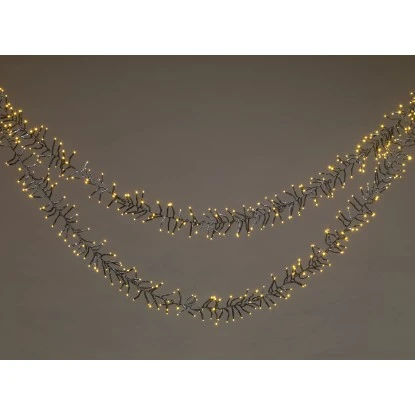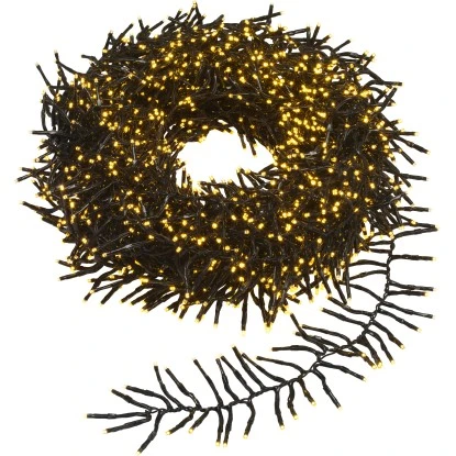 Eine stimmungsvolle Weihnachtsbeleuchtung schafft die LED-Büschellichterkette. Sie ist für den Einsatz im Innen- und Außenbereich geeignet. Mit ihren 1.920 warmweißen LEDs verschönert sie den Wohnraum, den Garten oder die Terrasse. Die Gesamtlänger der LED-Lichterkette beträgt 19,5 m inklusive der 5 m langen Zuleitung.