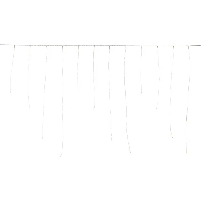 Die LED-Lichterkette Eisregen verleiht dem Balkon oder dem Fenster eine winterliche Atmosphäre. Sie eignet sich für den Innen- & Außenbereich. Es sind 100 integrierte warmweiße LEDs an insgesamt 20 Fäden angebracht. Diese sind unterschiedlich lang ausgeführt. Die Fadenlängen betragen zwischen 30 cm und 70 cm. Durch die Zuleitung von 500 cm lassen sich auch weiter entfernte Steckdosen erreichen. Das Kabel in silberner Farbe ist auf das Design abgestimmt. Die Gesamtlänge beträgt 690 cm.