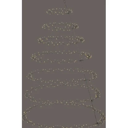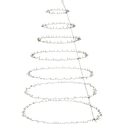 Mit der eleganten LED-Lichterkette verschönern Sie Ihren Tannenbaum mit einer angenehmen Beleuchtung. Sie ist gleichermaßen für den Innen- und Außenbereich geeignet. Aufgeteilt ist die Kette in sechs unterschiedlich lange LED-Ringe, sodass Sie Ihren Baum optimal schmücken können. Dazu verfügen die einzelnen Ebenen über einen Abstand von je 30 cm. Dank des dunkelgrünen Kabels passt die Lichterkette optimal zum Tannengrün. Die Gesamtlänge beträgt 680 cm und der max. Ø der Leuchtkränze beträgt 327 cm.