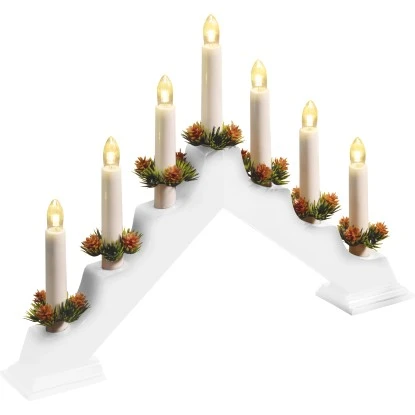 Für die perfekte Weihnachtsstimmung in Ihrem Zuhause. Der aus Holz gefertigte LED-Schwippbogen in Pyramidenform bietet sich als besondere, festliche und stimmungsvolle Fensterdekoration an. Die 7 warmweißen LEDss auf weißen Kerzenschaften verbreiten ein weihnachtliches Ambiente in Ihrem Wohnraum. Das weiße Zuleitungskabel ist 1,5 m lang und verfügt über einen Ein-/Ausschalter. Der Schwippbogen ist zur Verwendung im Innenbereich geeignet. Diesen wunderschönen Holz-Schwippbogen gibt es in den Farben Dunkelbraun, Natur oder Weiß.