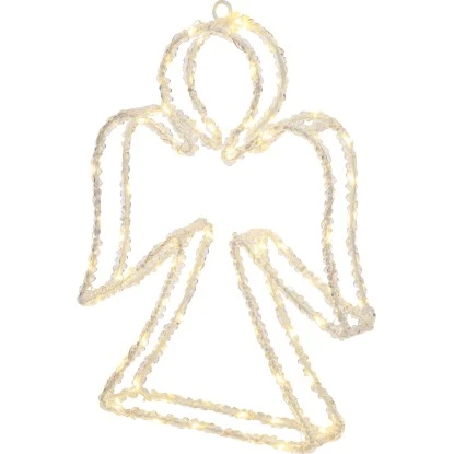 Der 3D-Engel verfügt über eine LED-Technologie, die durch einen niedrigen Stromverbrauch sowie umweltfreundliche Eigenschaften überzeugt. Dazu profitieren Sie von einer satten Lichtausbeute und hohen Lebensdauer. Der Betrieb über die Steckdose erfolgt durch das 500 cm lange Kabel, das mit seiner transparenten Farbe unauffällig bleibt. Insgesamt ist die LED-Silhouetten-Figur Engel mit 80 LEDs versehen, die ein warmweißes Licht ausstrahlen.