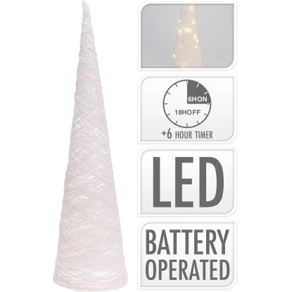 Die weiße, glitzernde Deko-Pyramide ist aus Rattan gefertigt und wird mit 40 warmweißen LEDs stimmungsvoll beleuchtet. Setzten Sie wunderschöne Akzente in Ihren Wohnbereich mit der dekorativen Pyramide und schaffen Sie ein stimmungsvolles Ambiente. Egal ob in Kombination mit anderen Pyramiden und Kugeln oder einzeln, die Rattanpyramide sorgt überall für eine gemütliche Atmosphäre.