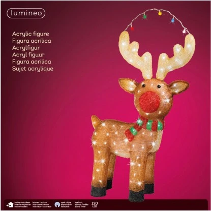 Die Weihnachtsfigur Rentier mit LED-Beleuchtung ist ein schöner Blickfang in der Winter- und Weihnachtszeit. Sie ist für den Innen- und Außenbereich geeignet und mit 120 kaltweißen LEDs ausgestattet.